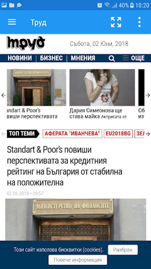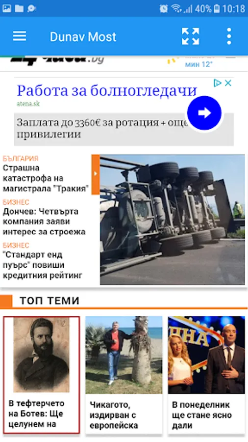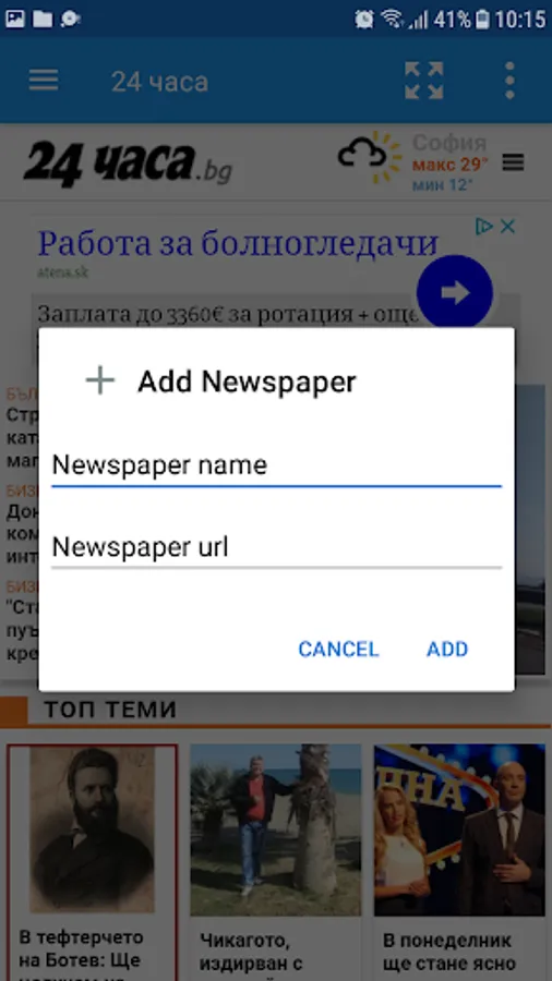 Newspapers Bulgaria allows you to read all the news from Bulgaria and the whole world in a very compact way from the comfort of your own phone or tablet.