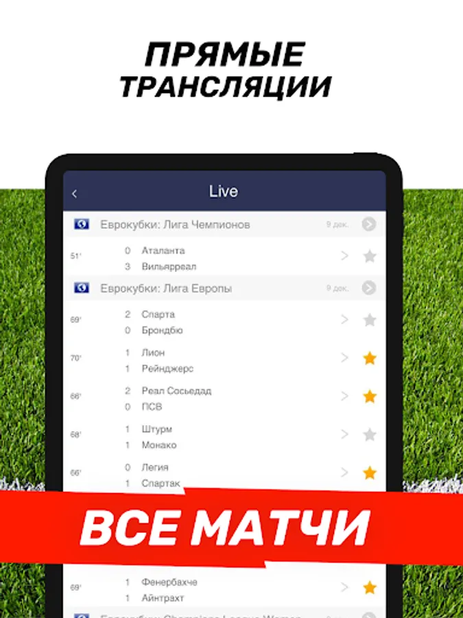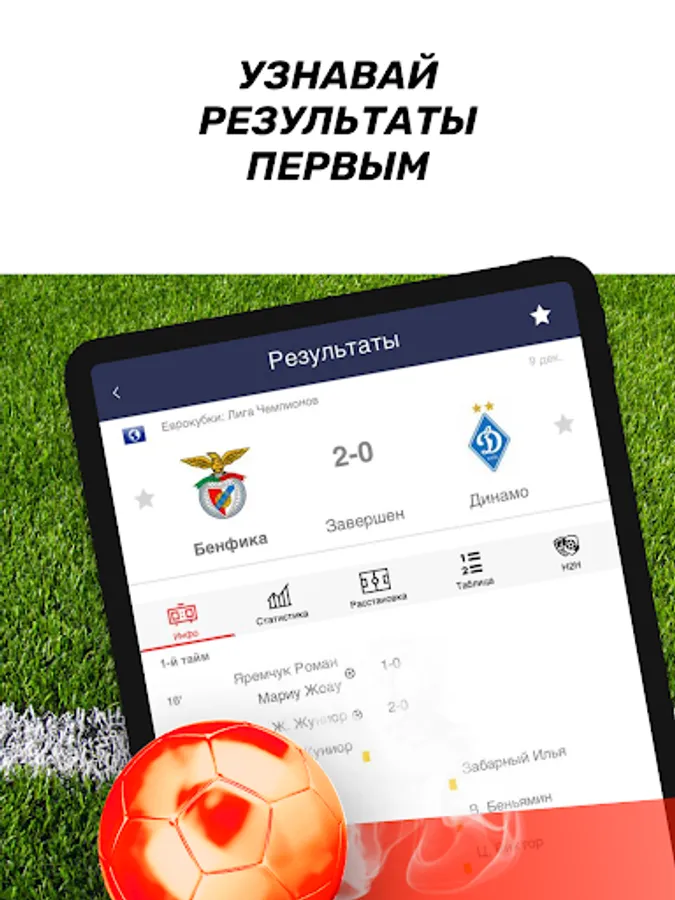 Receive push notifications and keep abreast of the results of football matches, track the progress of the game and the match score of your favorite team.
