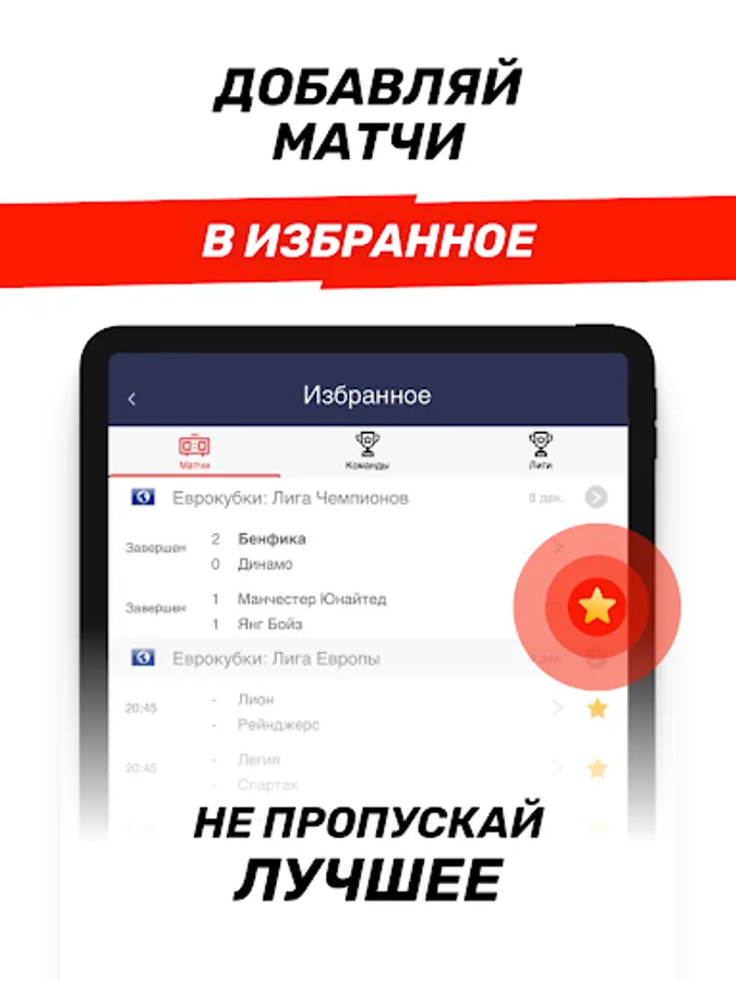 If for some reason you miss football, news, results and all the brightest moments of the game, we will save all the matches of interest in a personal selection.