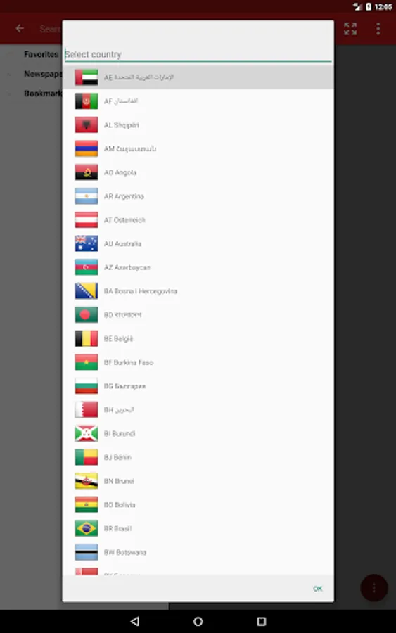 More than 130 countries and 6000 newspapers and news sites are included in the app