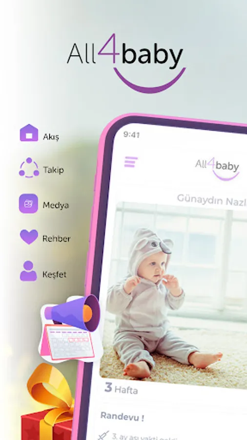 How about a helper who monitors all the processes in the miraculous relationship between mother and baby during pregnancy and afterwards? All4Baby is your biggest assistant in this adventure that starts with pregnancy follow-up week by week from the time you got pregnant. All4Baby is a great digital assistant that will be with you during pregnancy and after birth, during puerperium and afterwards, until the baby development and growth of your child, always with you on your journey between mother and baby!