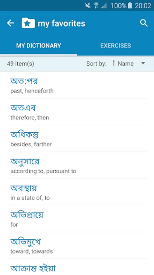 Of course, you can do anything you expect from a dictionary, but there is more: It also has an extensive word trainer! This trainer is personal, which means you can add all the words to your personal dictionary and learn those words with the word trainer.