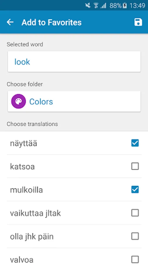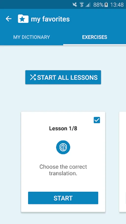 Of course, you can do anything you expect from a dictionary, but there is more: It also has an extensive word trainer! This trainer is personal, which means you can add all the words to your personal dictionary and learn those words with the word trainer.