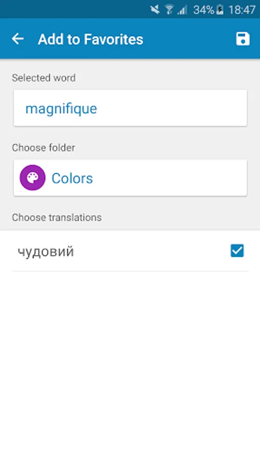Of course, you can do anything you expect from a dictionary, but there is more: It also has an extensive word trainer! This trainer is personal, which means you can add all the words to your personal dictionary and learn those words with the word trainer.
