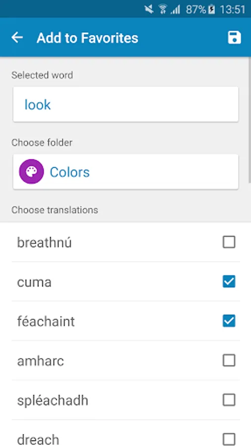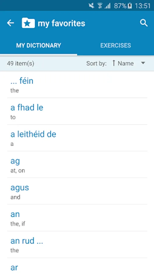 Of course, you can do anything you expect from a dictionary, but there is more: It also has an extensive word trainer! This trainer is personal, which means you can add all the words to your personal dictionary and learn those words with the word trainer.