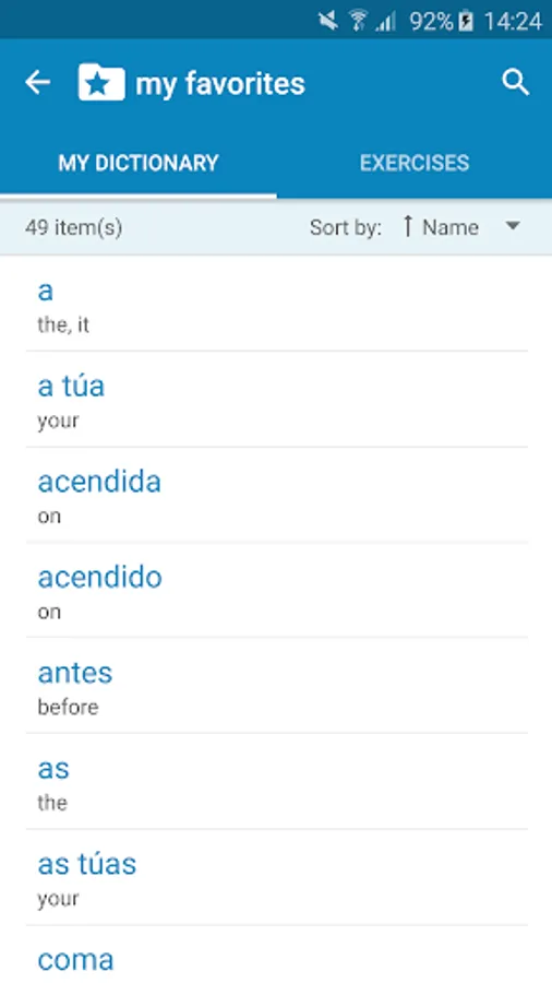 Of course, you can do anything you expect from a dictionary, but there is more: It also has an extensive word trainer! This trainer is personal, which means you can add all the words to your personal dictionary and learn those words with the word trainer.