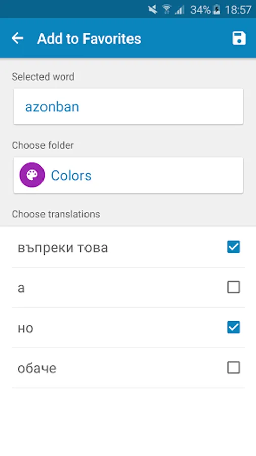 Of course, you can do anything you expect from a dictionary, but there is more: It also has an extensive word trainer! This trainer is personal, which means you can add all the words to your personal dictionary and learn those words with the word trainer.