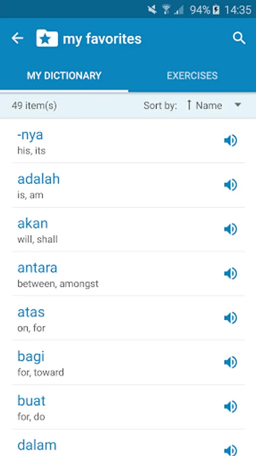 Of course, you can do anything you expect from a dictionary, but there is more: It also has an extensive word trainer! This trainer is personal, which means you can add all the words to your personal dictionary and learn those words with the word trainer.