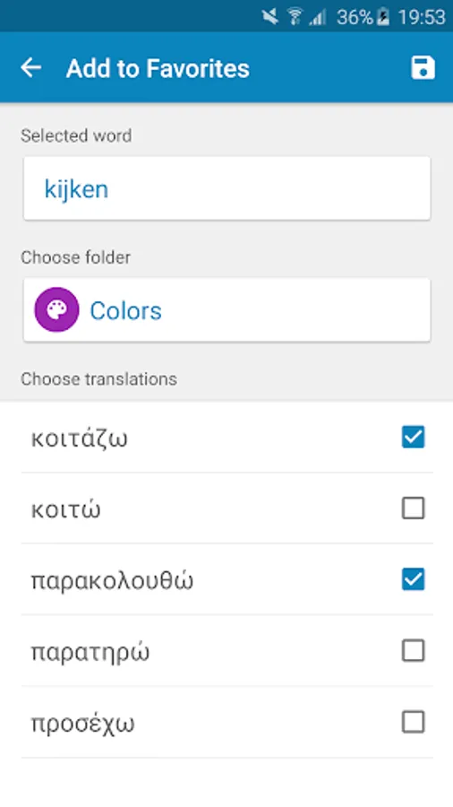Of course, you can do anything you expect from a dictionary, but there is more: It also has an extensive word trainer! This trainer is personal, which means you can add all the words to your personal dictionary and learn those words with the word trainer.