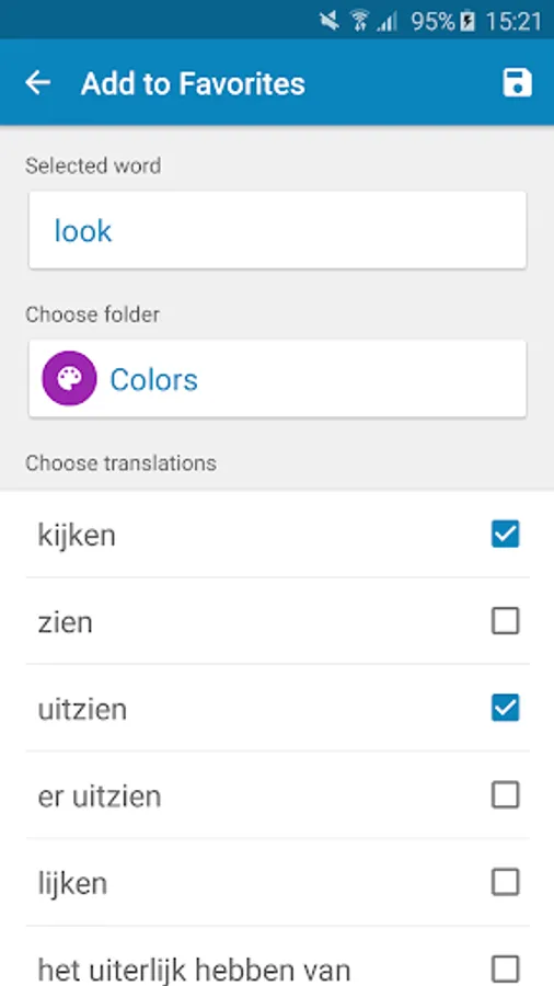 Of course, you can do anything you expect from a dictionary, but there is more: It also has an extensive word trainer! This trainer is personal, which means you can add all the words to your personal dictionary and learn those words with the word trainer.