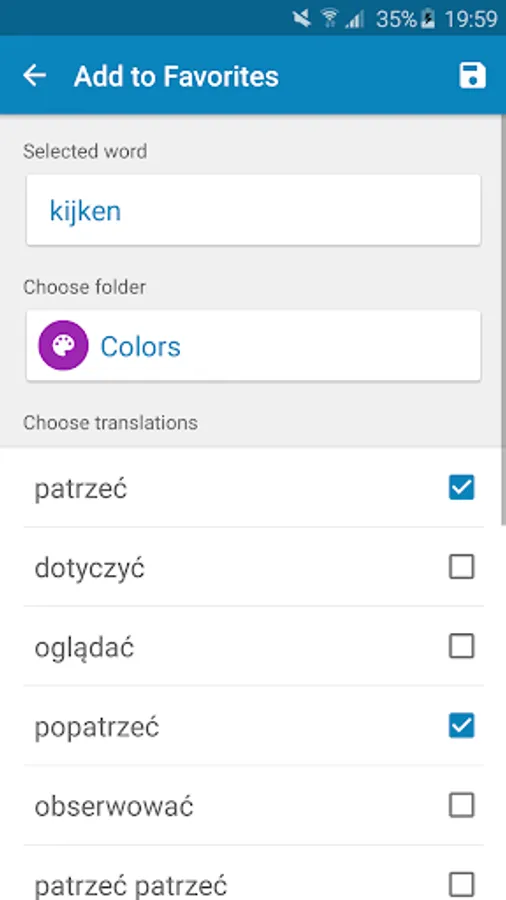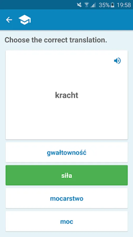 Of course, you can do anything you expect from a dictionary, but there is more: It also has an extensive word trainer! This trainer is personal, which means you can add all the words to your personal dictionary and learn those words with the word trainer.