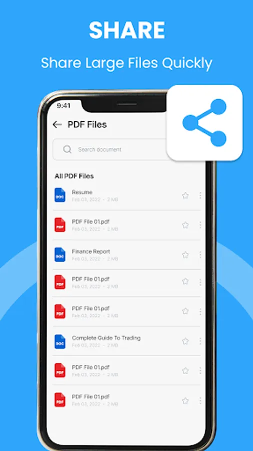 Read pdf files and share it with friends directly from all documents reader app.