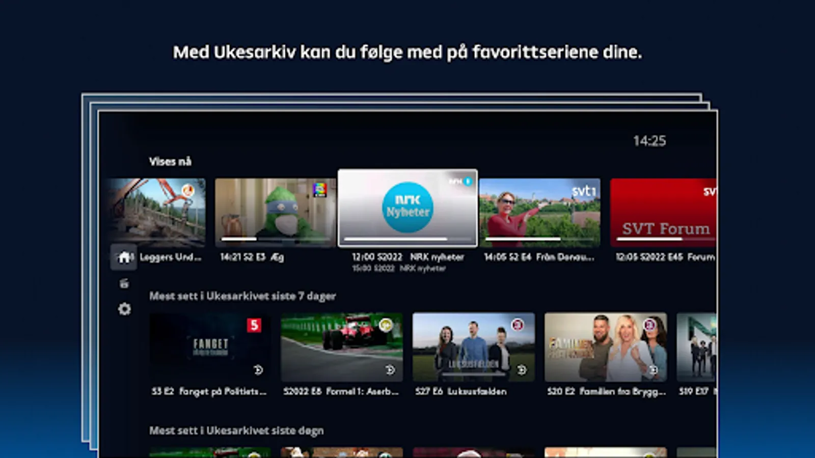 - Stream your TV channels live, or watch shows in the weekly archive up to seven days after the broadcast