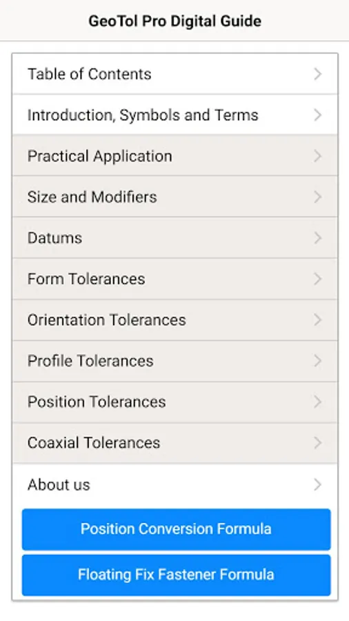 This is an App version of our best-selling printed pocket guide on Geometric Dimensioning and Tolerancing (GD&T). In its 77 pages, it will give a description of GD&T symbols and their use on engineering drawings. Common inspection techniques and reporting methods are also included in the descriptions.