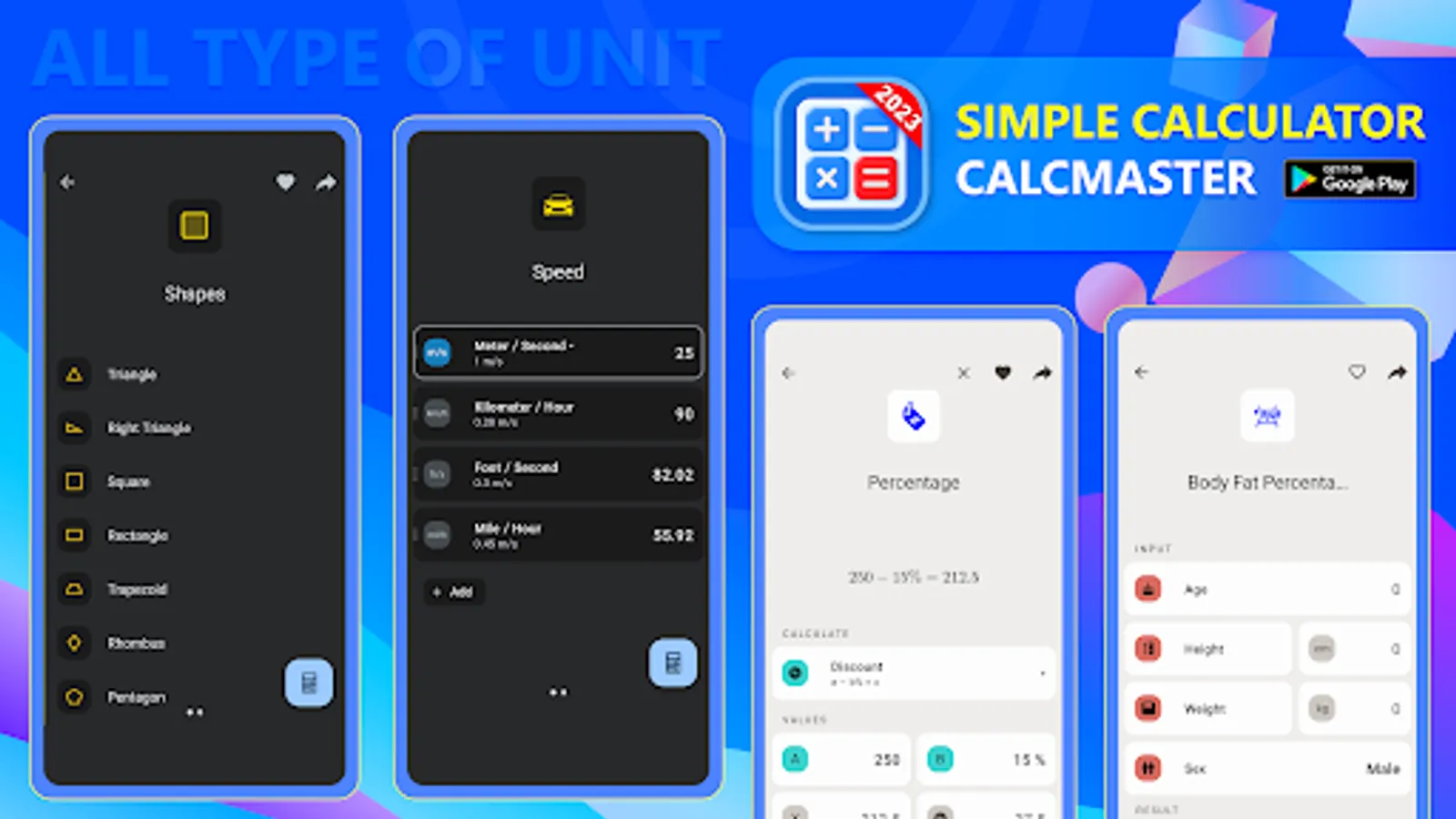 Featuring over 75 FREE Calculators and Unit Converters packed in with a Simple or Scientific Calculator, it's the only calculator you will need from now on on your device.
