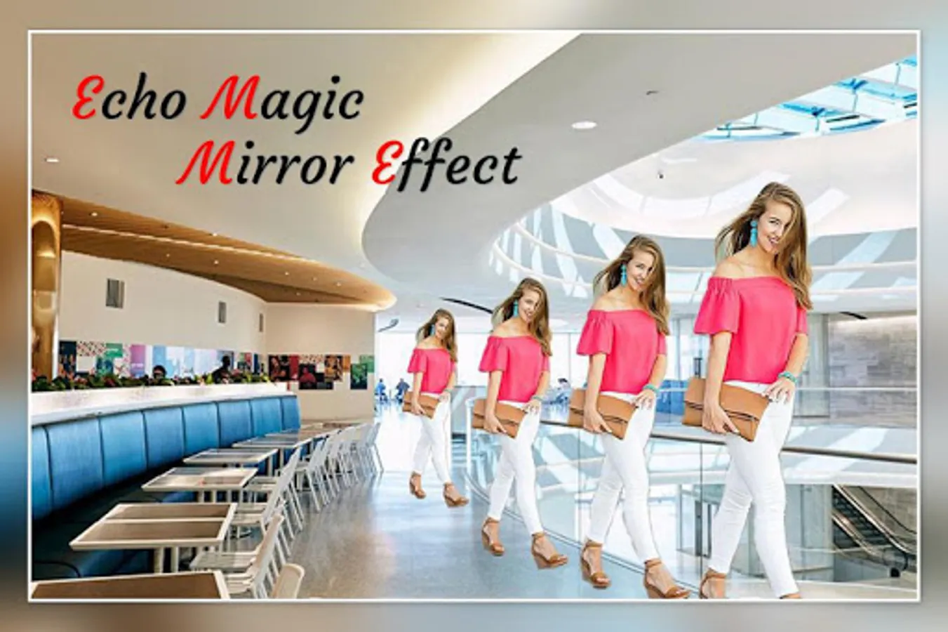Try add slow motion to your photo, want to show clones with 3d mirror effect. Apply echo effect to any photo from your gallery. Cut out and repeat yourself to create awesome photo effects. Addition you can create innovative 3d mirror effect, show crazy, magical mirror effects, Twin Effect or Reflection Effect or many more effect.