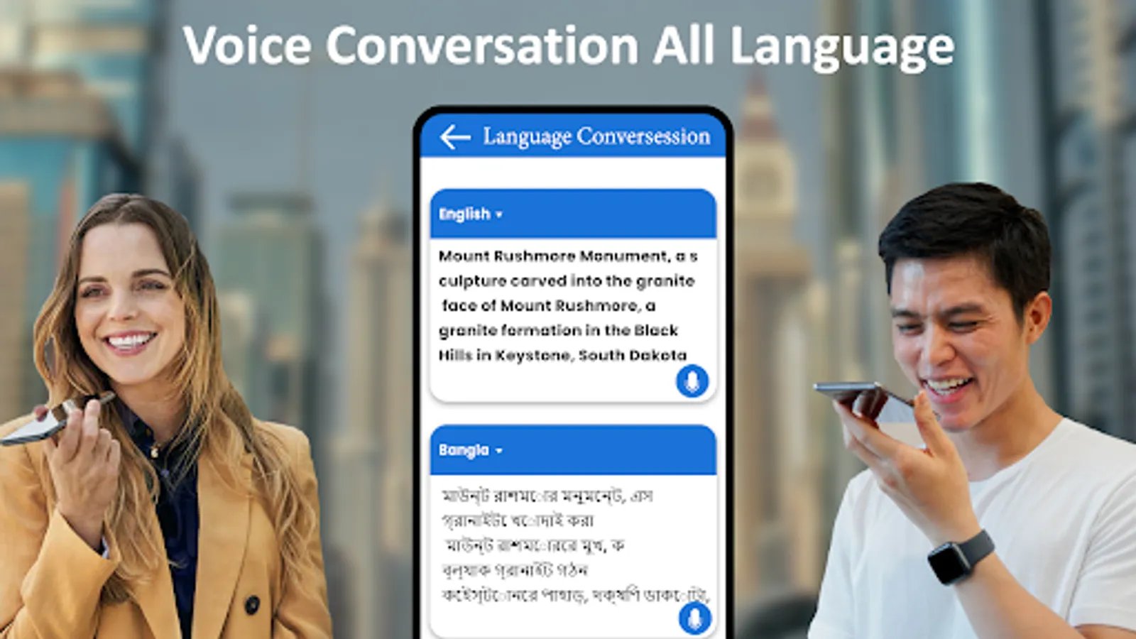 - Listen to translations in male or female voices.