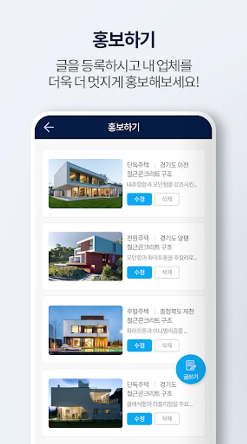 - Promotion of architect offices, construction companies by construction type, authorized brokerage offices, and construction material companies