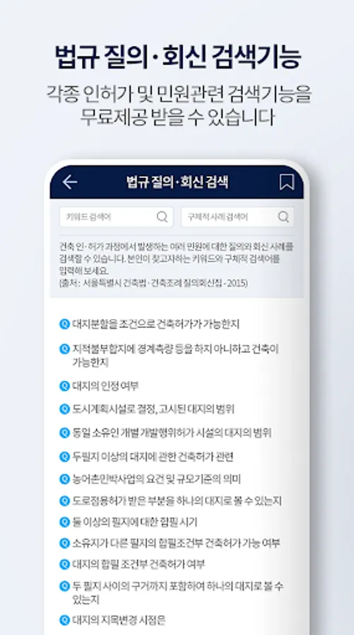 * Provides information search function to reply to inquiries related to the building permit process and building law