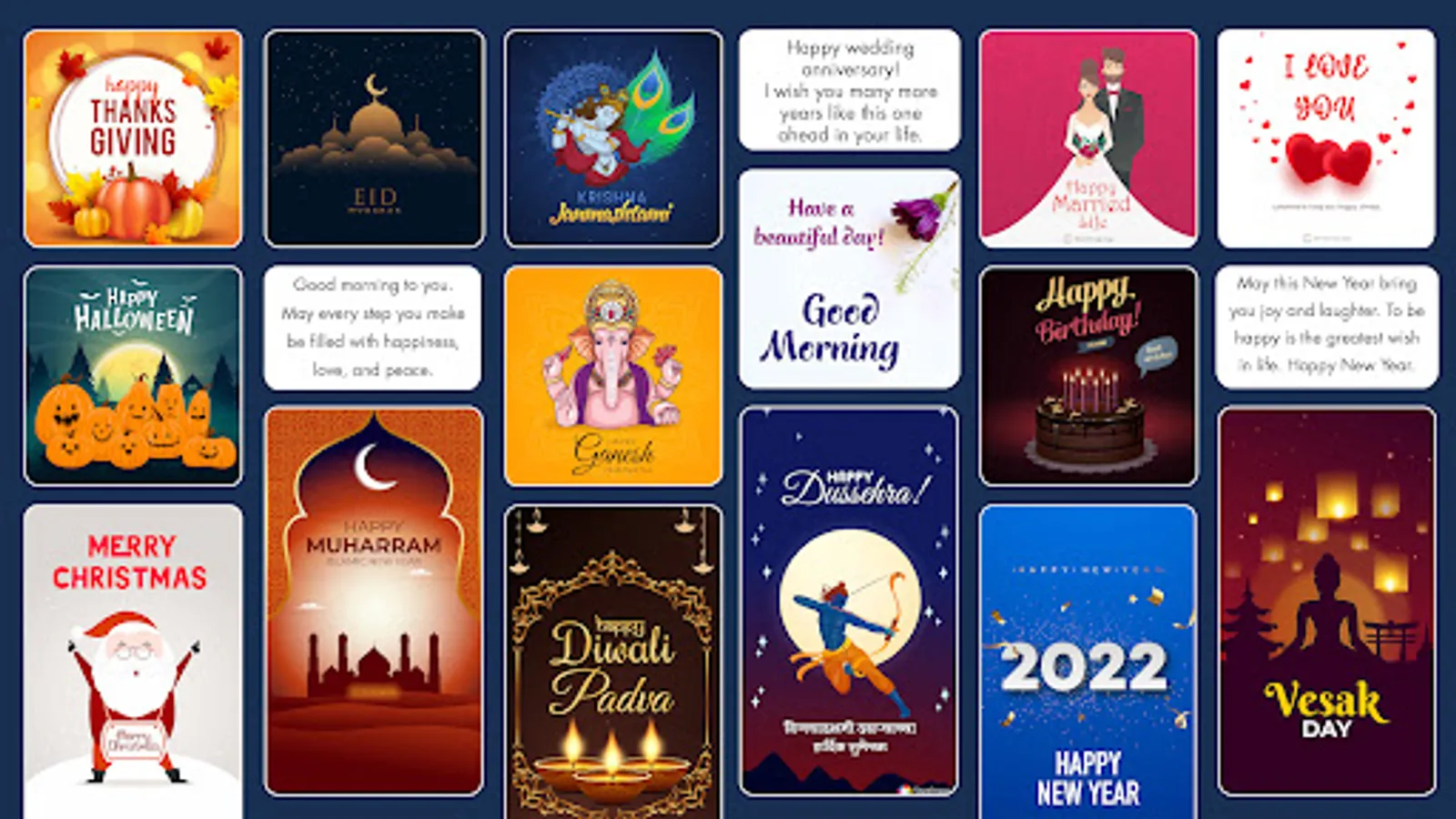 We offer you All Indian Festival & Daily Wishes Images + Greetings Messages + Wallpapers + Text on images editor + Ecards= All festival and Daily wishes, Greetings App