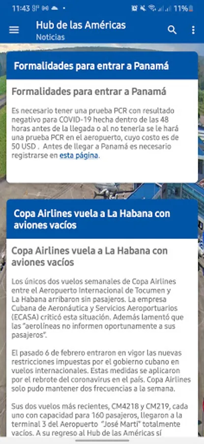 In this section of Yo Reportero and through our APP, we keep you informed about the latest news Hub of the Americas, Panama Tocumen and Panama Pacifico airports. We are updating the news in real time, providing you with the most important information on routes, connections, migration and health policies. Through the APP you can read the news offline and check when necessary.