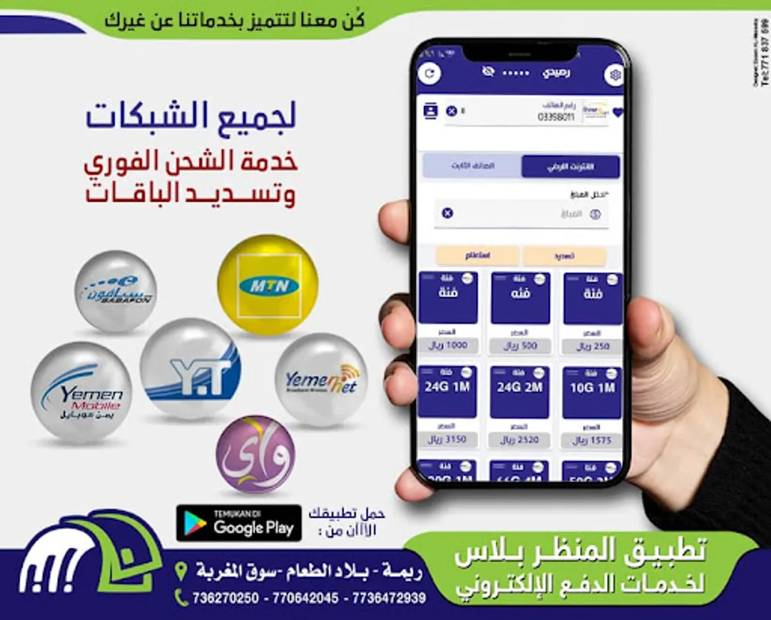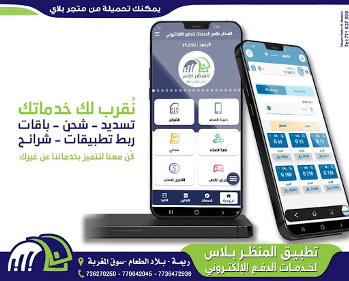 Al-Mandhar Plus application for electronic payment, payments and communications provides its customers with unique services, as it saves them time, money and effort for users in order to provide the service in the fullest way possible and is characterized by ease and flexibility in using the application, it is characterized by modern interfaces, modern designs and beautiful colors, and the application is designed and developed by experts And designers and programmers with high qualifications and many experiences, and among the services that the application provides to its customers: