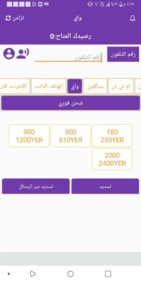Pay the balance and packages of all Yemeni telecom networks.