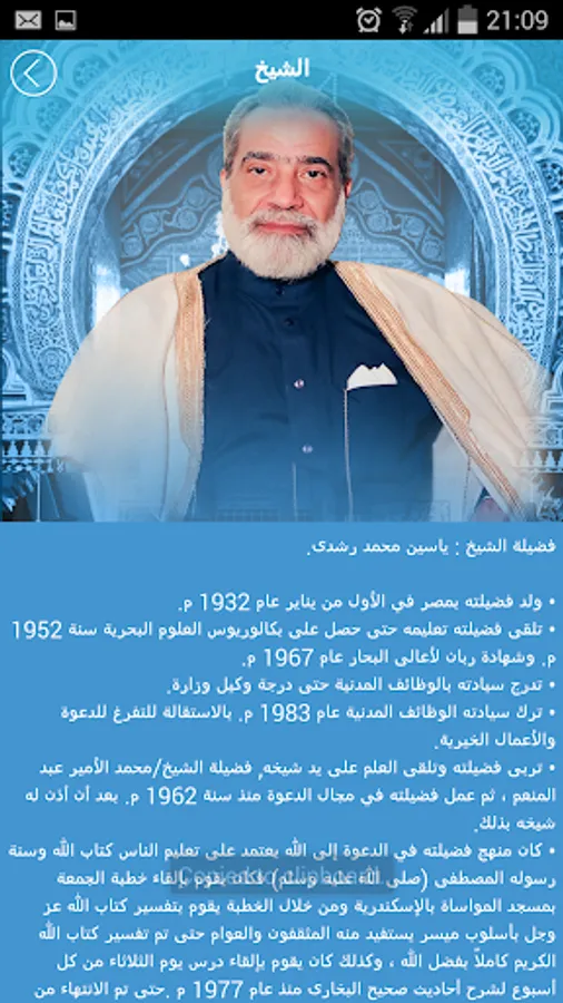 • the approach eminence in the call to God depends on teaching people the Book of Allah and the Sunnah of His Messenger Mustafa (peace be upon him) was the throwing sermon Friday Mosque sympathy in Alexandria and during the sermon the interpretation of the Book of Allah Almighty manner facilitator benefit intellectuals and commoners even been interpreted Book complete Holy God, thanks to God, and he performed as well as throwing a lesson on Tuesday of each week to explain the true sayings of steam since 1977 M.any was finished explaining the hadith, all thanks to God, all this calculation, the face of God Karim, without any financial compensation.