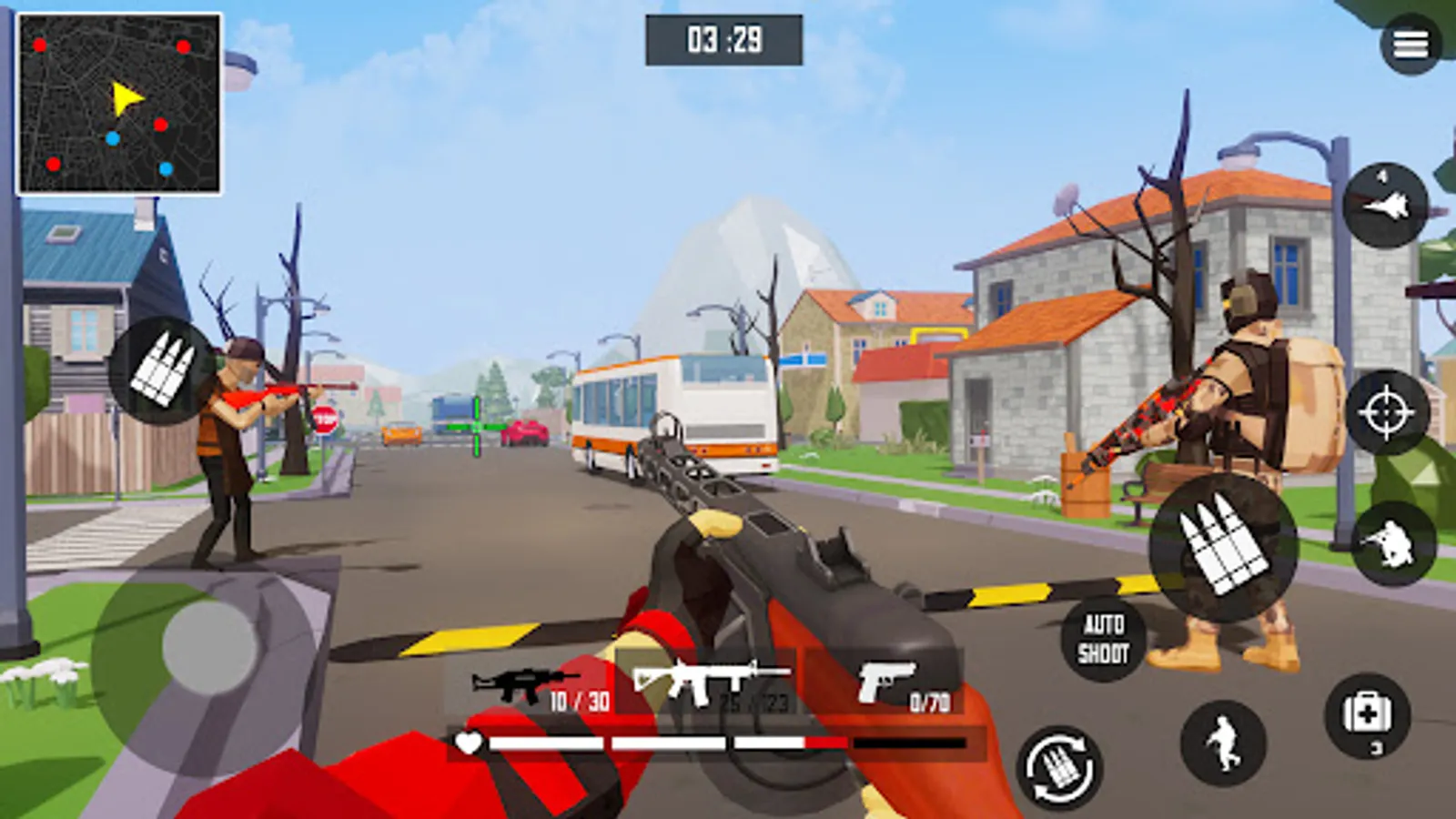 Enjoy the military war location of the blocky battlegrounds! Unknown island with a dead city somewhere in the sea. Shoot as military pixel shooter in FPS gun games for best performance of battle royale. Defend your base by gun fighting the flying helicopter attacks. Its Gun Warfare Strikes that fight the terrorist counterattacks. Be a real craft warrior to fulfill the FPS sharpshooter duty in real war games offline. Train from best gun shooting games to become best PIXEL shooter. You can play in offline games or the addictive gameplay fun of gun games to be the best military shooter of polygon games.