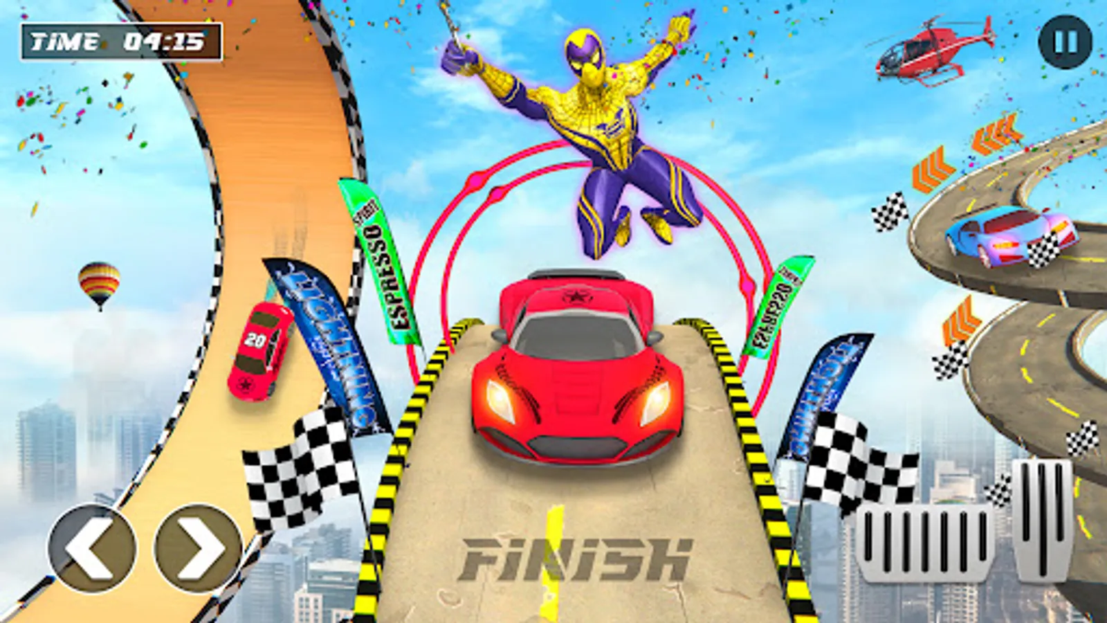 Are you ready to become the sports race master? Crazy dr. stunt in a spider car race? If yes then amazing flying spider superhero mode will take you into the sky with impossible stunt car. Its time to be the champion of stunt car race. Win the race as legendary spiderhero among other superheroes car game. This is the opportunity of becoming a master racer of stunt car race games. Do not miss the chance of becoming a superhero in modern city car driving and parking games.