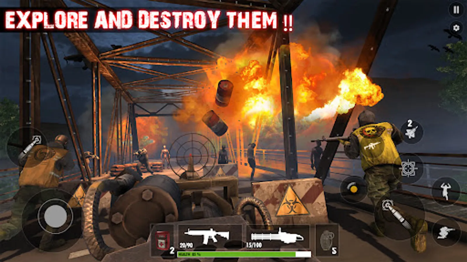 ★ New zombie killing journey and survival has started! Build a fortress in crazy zombie shooting gun games for doomsday strategy. When surrounded by unkilled zombies use a petrol barrel for massive explosions.
