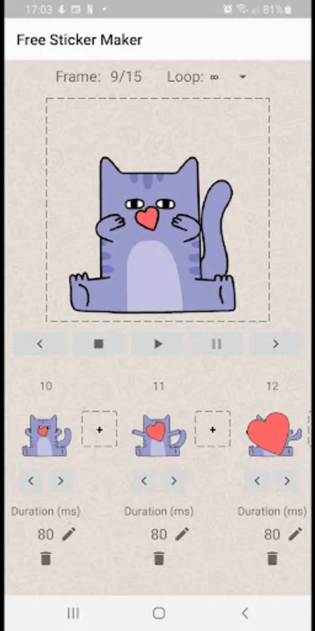 Then you can edit each frame of the animation, drawing, adding text, emojis and more..