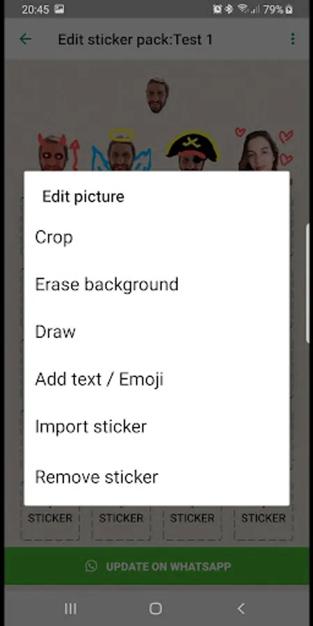 Create your own stickers for WhatsApp and share them with you friends. Very easy to use! You can take pictures from Gallery or Camera, crop, erase background and draw! Each operation can be undo and redo for a more precise edition of you stickers.