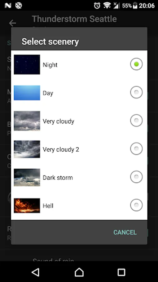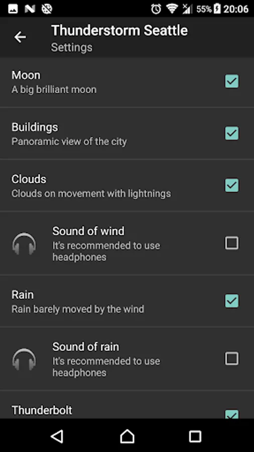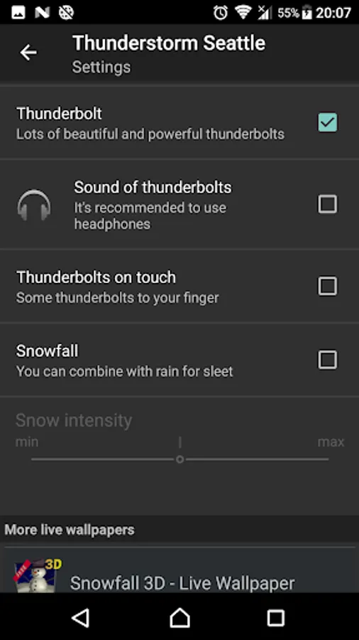 It has a wonderful storm with clouds, rain, very realistic thunderbolts and snowfall.