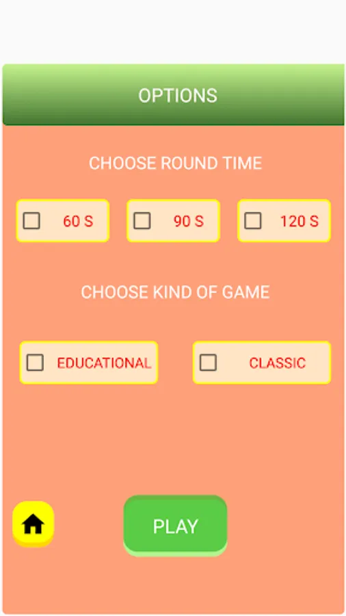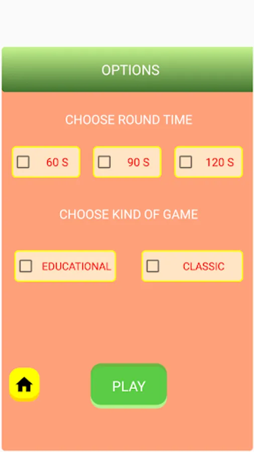 This is the new version of one of the most popular games in many countries. The game’s name “ALPHABET” is new. People used to play it on paper. Now, we offer this version for you to play it, on your android devices. It is easy but challenging especially because it contains a countdown. Players can choose the time for each round: either 120 seconds or 90 seconds or 60 seconds.