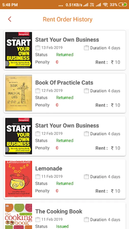 This app also let user to keep the track of the rent orders placed. It also provides when the book is required to be returned along with fine if applied.