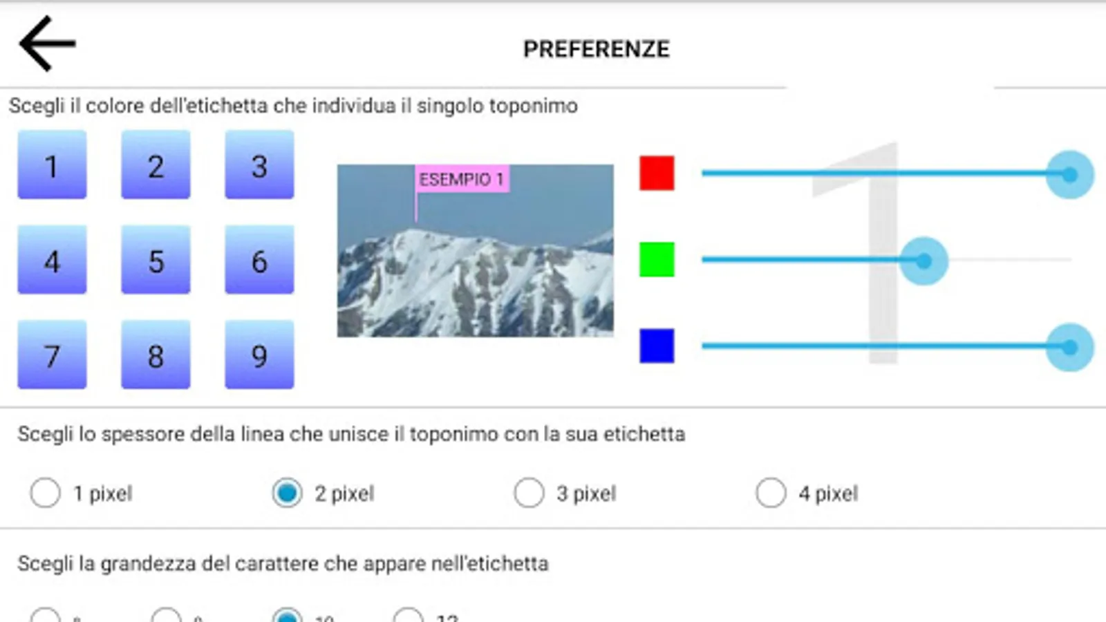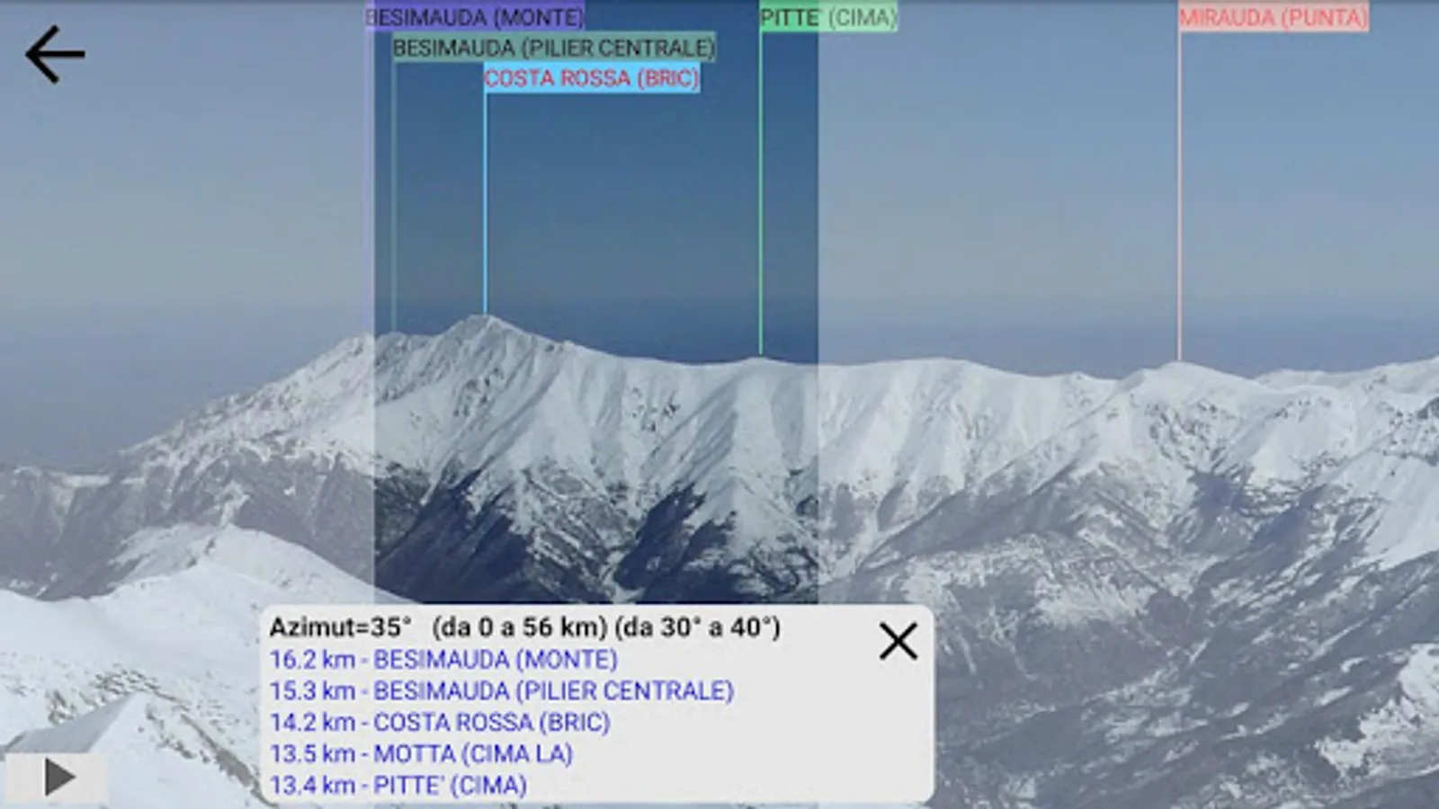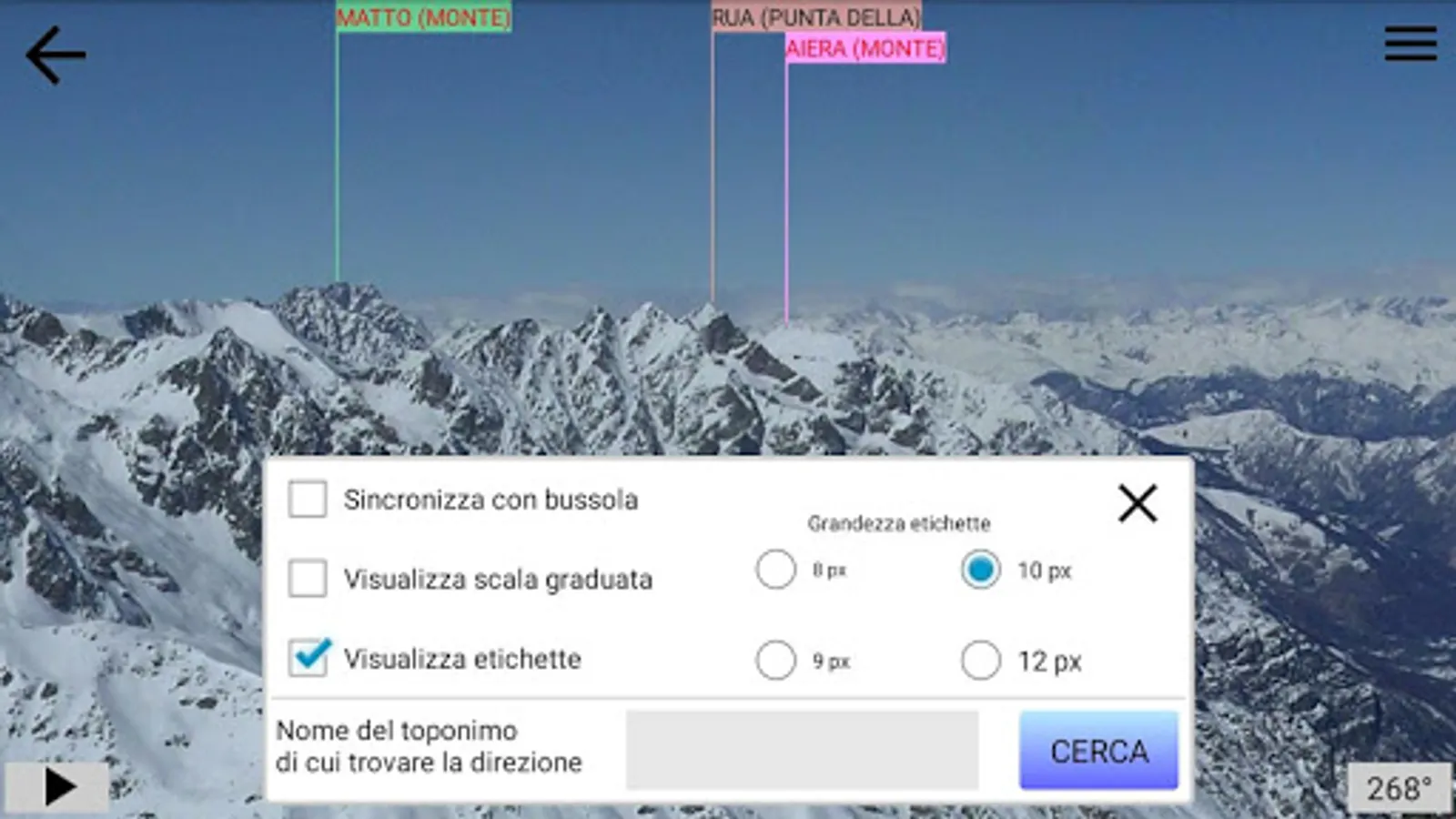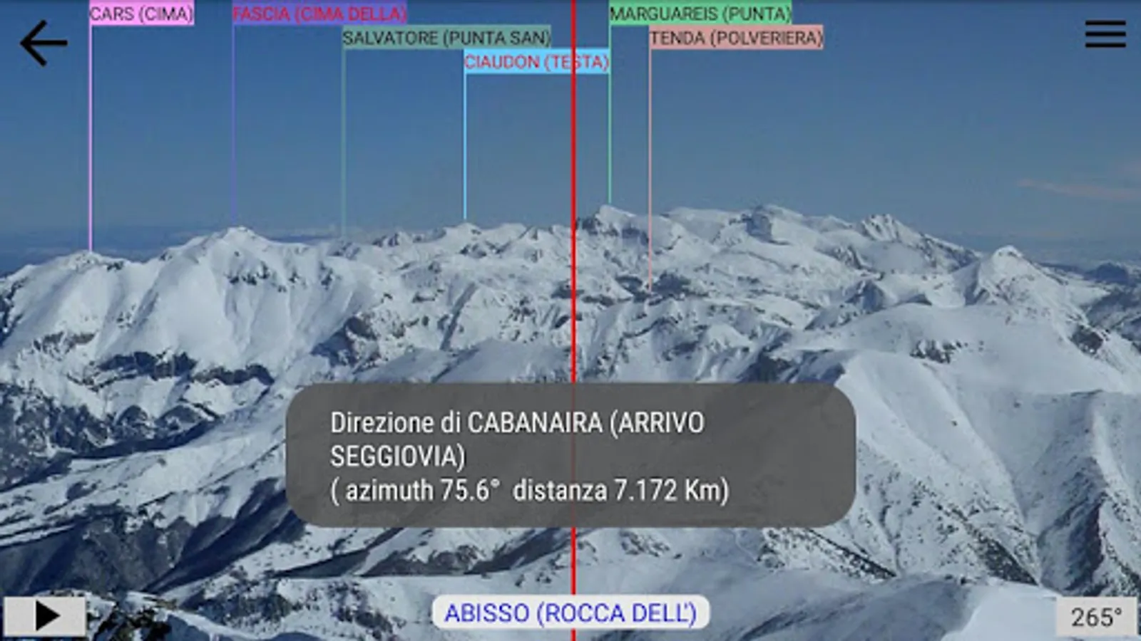 The app allows you to view 360 degree panoramas of the site of The Mountaineer Alerts (both low and high resolution) and even the "personal" user made. It also allows to realize the "synthetic" views with the indicated nimi of place names visible from a certain point. All this - very important - without being connected to the network, what this difficult if not impossible in the mountains.