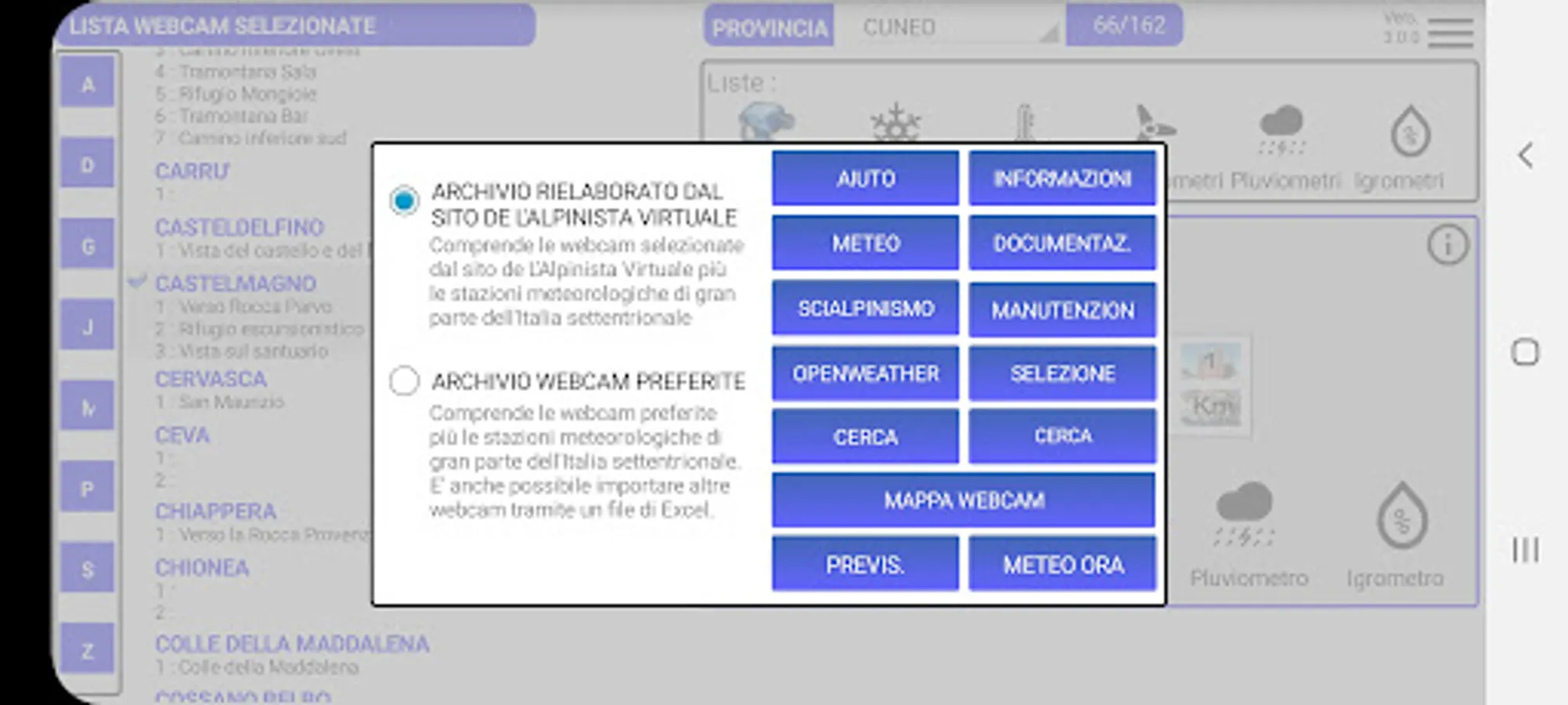 from version 2.2.0 onwards an alternative archive of webcams chosen and selected by the user is also managed.