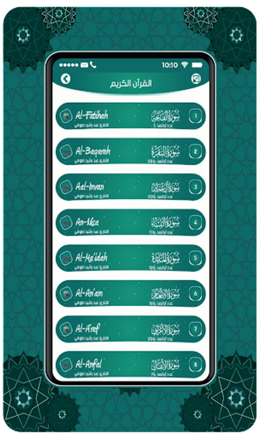 The application of the Noble Qur’an with the voice of Abd al-Rashid al-Sufi allows you to hear all the surahs of the Holy Qur’an through your mobile phone or tablet with ease and ease through one program that contains all the surahs of the Holy Qur’an. Store for Android phones. And you can download the application of the Noble Qur’an with the voice of Abdul Rashid Al-Sufi with ease, so that you can enjoy reciting the Noble Qur’an with the voice of Sheikh Abdul Rashid Al-Sufi wherever you want.