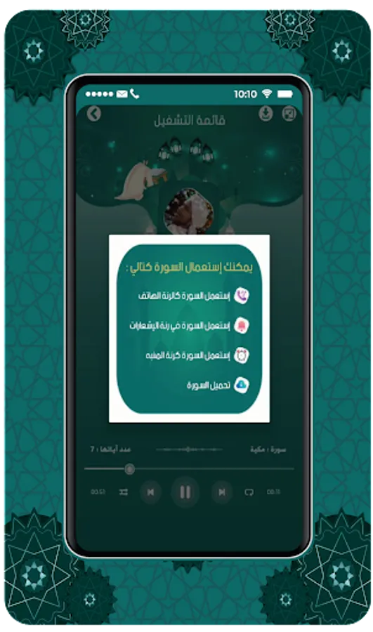 ♥ The interface of the Holy Qur’an program with the voice of Abdul Rashid Al-Sufi is very simple, which enables you to use the program with ease and ease. You will not suffer any difficulty starting from downloading the program from the store until the download of the program to download the Noble Qur’an with the voice of Abdul Rashid Al-Sufi, and using it to listen to the surahs of the Noble Qur’an.