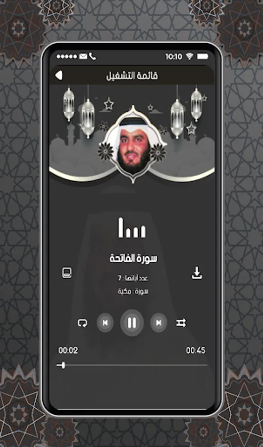 After installing the application with ease from the store, you will be able to simply listen to the Noble Qur’an with the voice of Sheikh Ahmed Al-Ajmi.