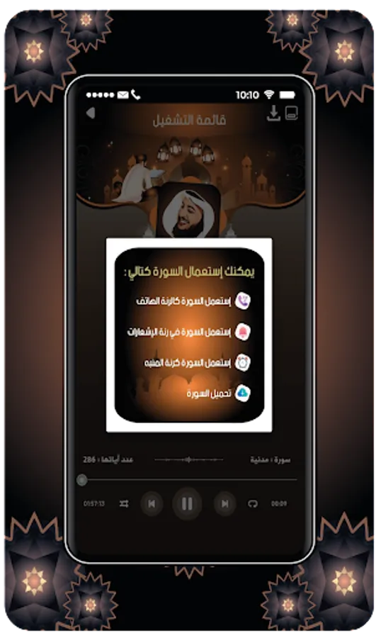And after installing the application with ease from the store, you will be able to simply listen to the Noble Qur’an with the voice of Sheikh Qur’an Idris abkar.