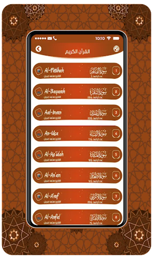 The application of the Holy Qur’an with the voice of Muhammad Jibril allows you to hear all the surahs of the Holy Qur’an through your mobile phone or tablet with ease and ease through one program that contains all the surahs of the Holy Qur’an. android. And you can download the application of the Noble Qur’an with the voice of Muhammad Jibril with ease, so that you can enjoy reciting the Noble Qur’an with the voice of Sheikh Muhammad Jibril wherever you want.