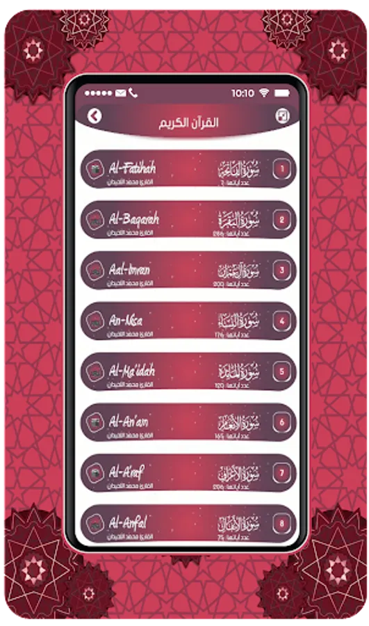 The application of the Noble Qur’an with the voice of Muhammad al-Luhaidan allows you to hear all the surahs of the Noble Qur’an through your mobile phone or tablet with ease and ease through one program that contains all the surahs of the Noble Qur’an. android. And you can download the application of the Noble Qur’an with the voice of Muhammad Al-Luhaidan with ease, so that you can enjoy reciting the Noble Qur’an with the voice of Sheikh Muhammad Al-Luhaidan wherever you want.