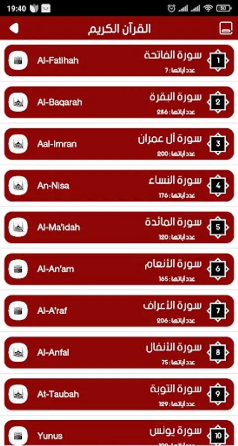 ✘ The interface of the Noble Qur’an program with the voice of Yasser Al-Dosari is very simple, which enables you to use the program with ease and ease