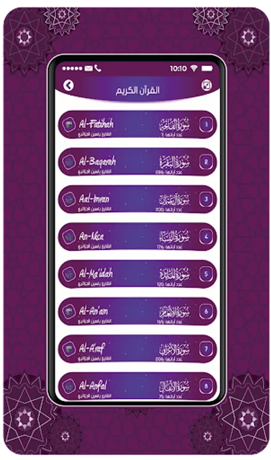The application of the Noble Qur’an with the voice of Yassin Al-Jazaery allows you to hear all the surahs of the Holy Qur’an through your mobile phone or tablet with ease and ease through one program that contains all the surahs of the Noble Qur’an. android. And the Noble Qur’an application can be downloaded with the voice of Yassin Al-Jazaery with ease, so that you can enjoy reciting the Noble Qur’an with the voice of Sheikh Yassin Al-Jazaery wherever you want.