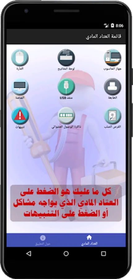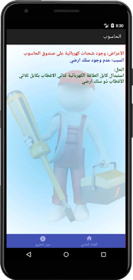 The application provides a simple, interactive method for diagnosing physical computer problems based on asking questions including symptoms or defects in the physical part that faces a problem and presenting the causes and appropriate solutions for those problems. This application is useful for maintenance technicians and computer users alike, as well as the possibility of using it for educational purposes by students.