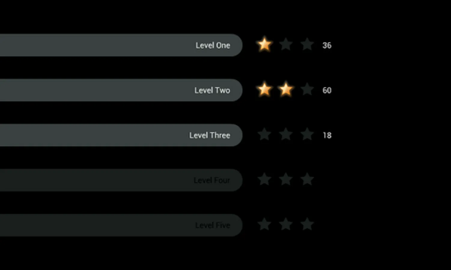Once you achieve the first star for a given level, you can proceed to the next level. Levels get harder in a few different ways: The ball could get smaller; you could get fewer balls; the bar could be smaller; or, gravity could increase.