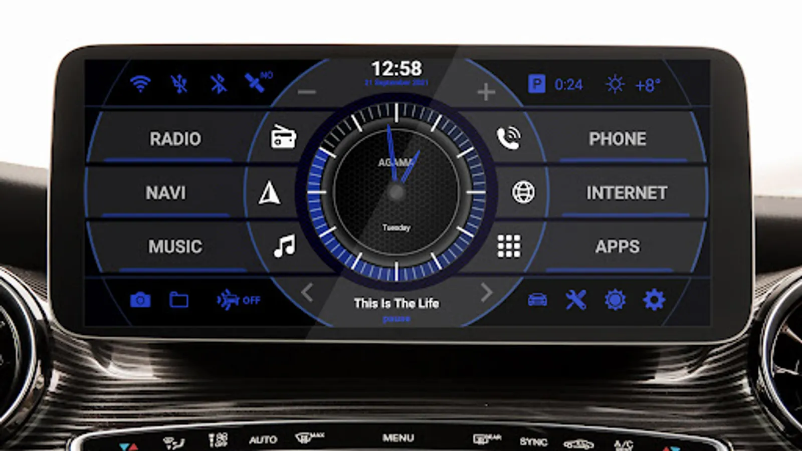 The AGAMA Car Launcher is intended for use in dashboard units and audio systems working on the Android operating system, as well as for Android phones and tablets for use in a car.