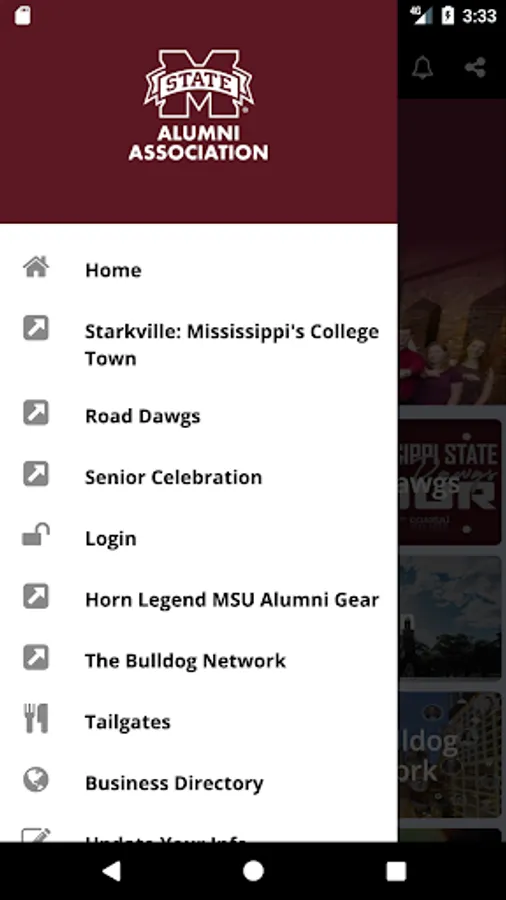 The Mississippi State University Alumni Association brings the power of the Mississippi State Alumni family to your mobile device. Read up on the latest campus news, access the latest social media posts, or locate a Mississippi State alumni chapter/club or event to attend near you. Alumni can view a mobile membership card, access benefits and discounts on the go, and make a gift to Mississippi State in two easy steps. Alumni also can update contact information and get notifications on matters of importance to them. Stay True Maroon through all the MSU Alumni app has to offer. Hail State!